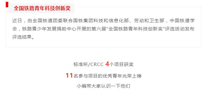 “全国铁路青年科技创新奖”揭晓!CRCC 11人上榜